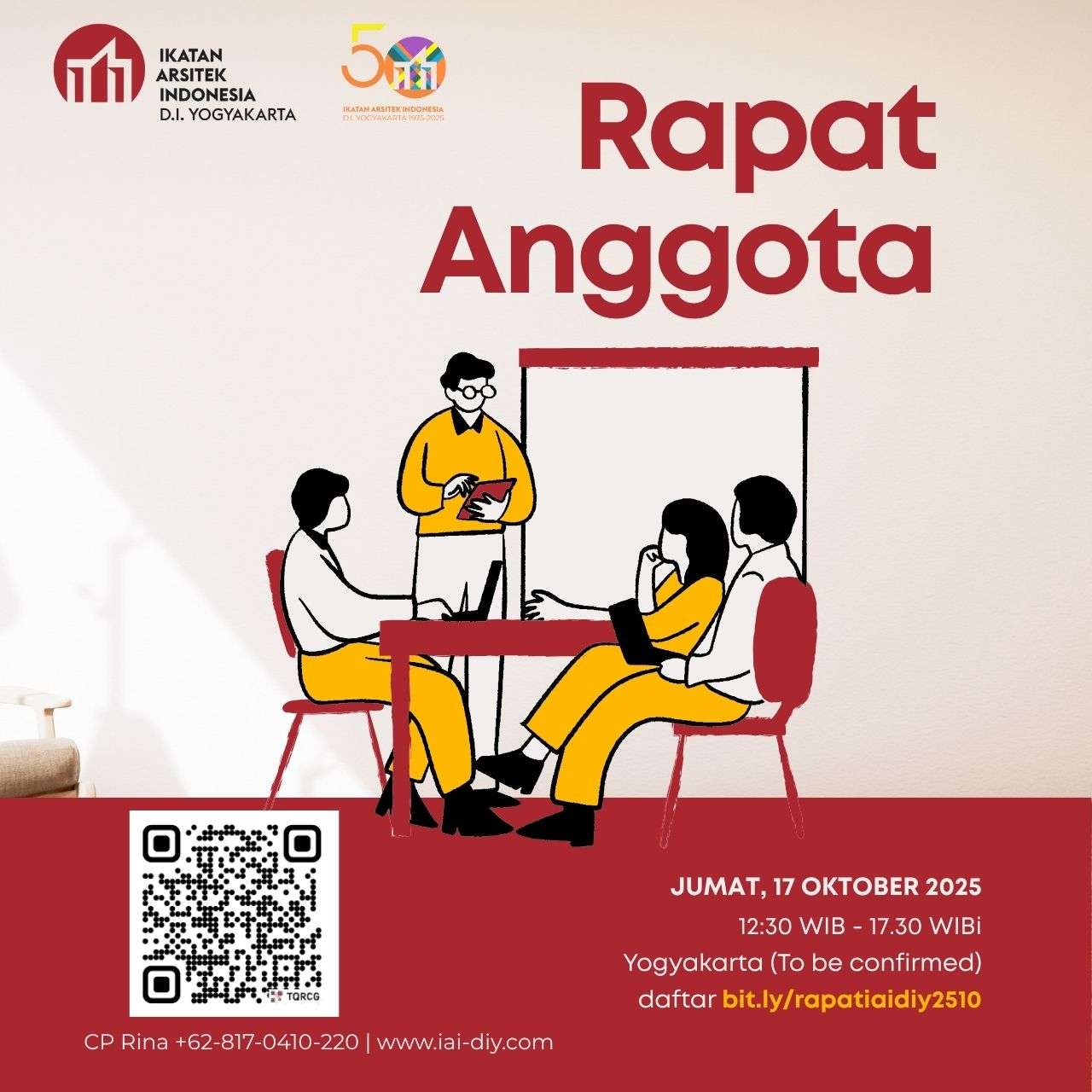Rapat Anggota Ikatan Arsitek Indonesia Daerah Istimewa Yogyakarta (IAI DIY) diselenggarakan pada Jumat, 17 Oktober 2025,  ...Read More